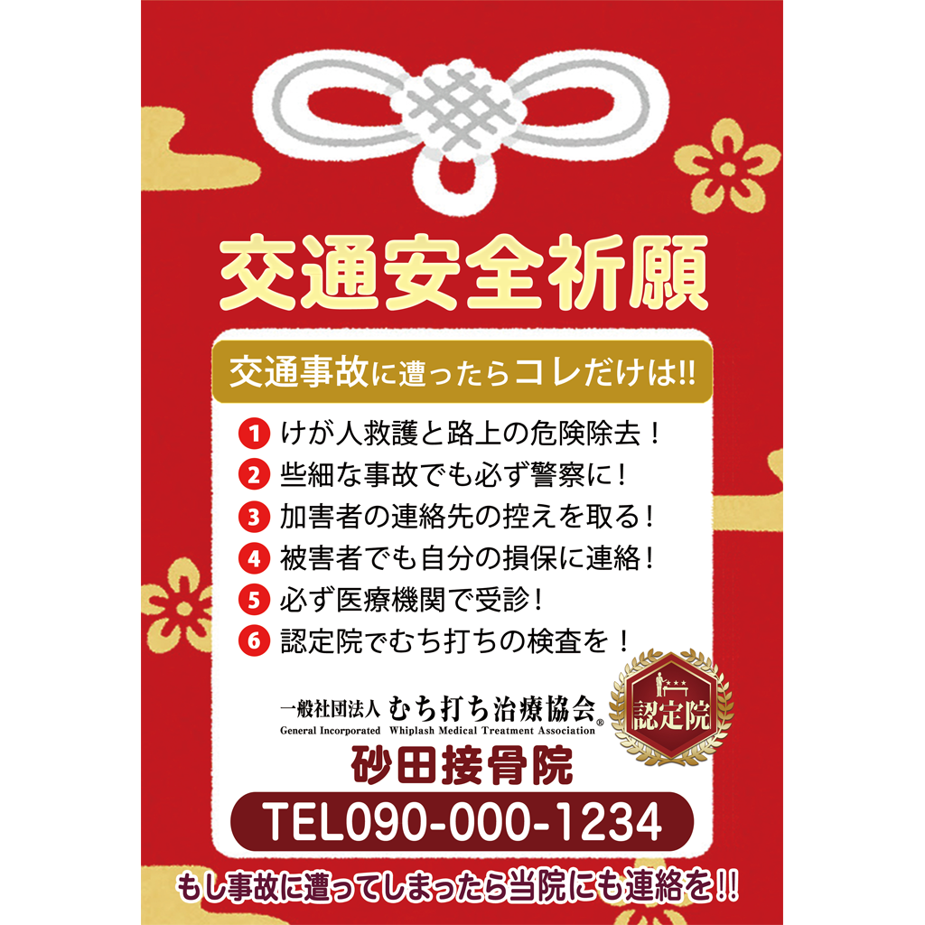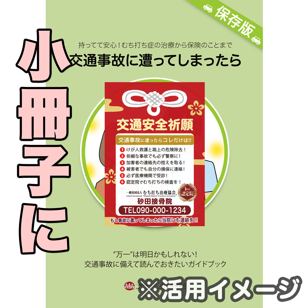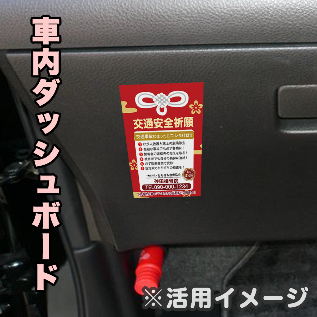 交通事故に遭ったとき、患者さまがすぐに「どこに相談すればいいか」思い出せるようにするのが、このお守りシールです。